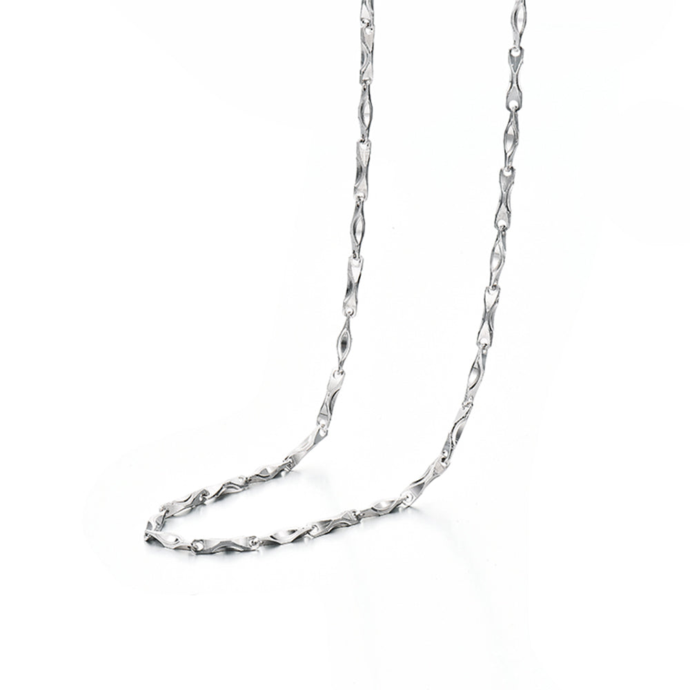 Each precisely formed link creates a subtle rhythm along the chain, delivering a refined, minimalist aesthetic with architectural clarity. The slim 1.5mm profile keeps the look lightweight and versatile — ideal for everyday wear, solo styling, or layering with pendants and other chains.