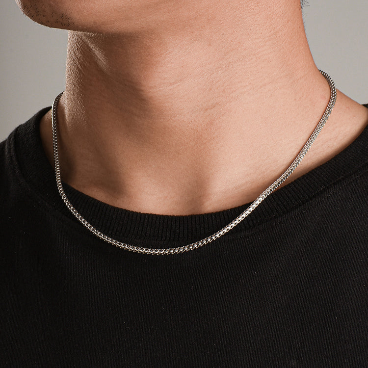 Designed for men who appreciate craftsmanship and structure, the 2.5mm Foxtail Chain Necklace is a timeless essential with enduring character.