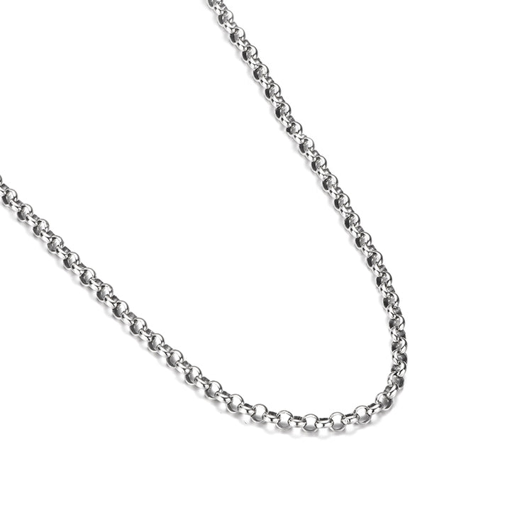The 5mm Round Rolo Chain Necklace is built on balance — between weight and comfort, structure and fluidity.