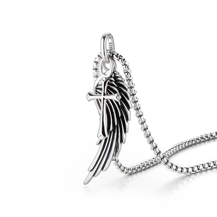Wings symbolize purity and hope, implying a hopeful future and pure love. The cross represents faith. The combination of flying wings and cross elements contains a strong heart.