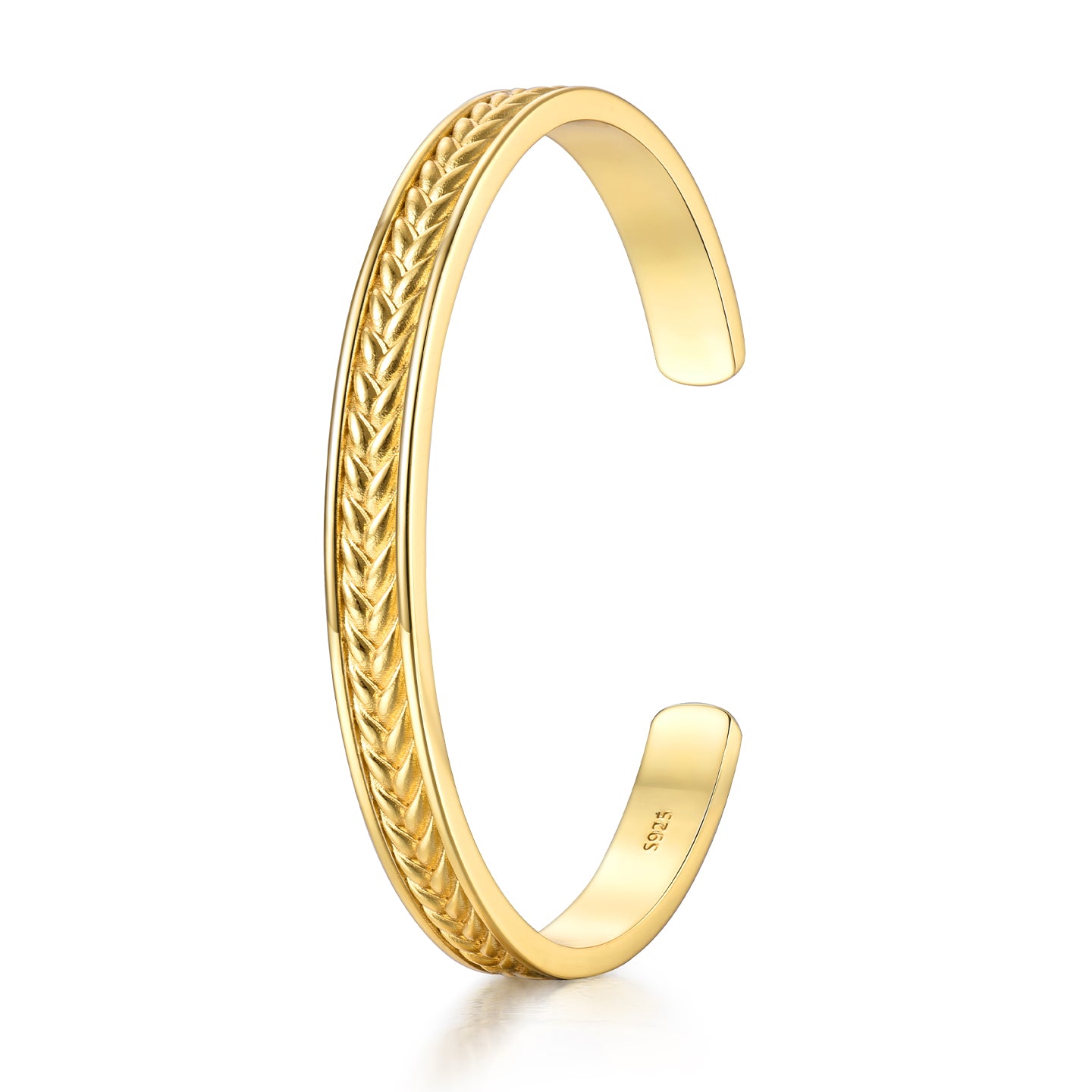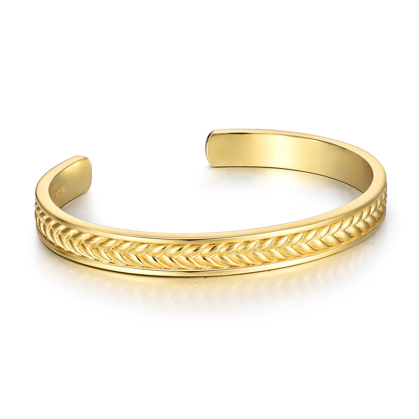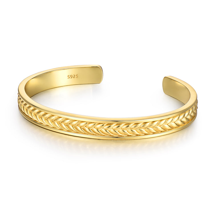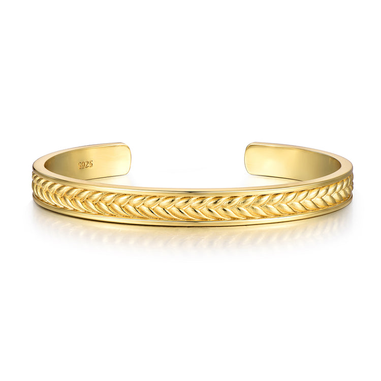 The Golden Wheat Ear Bangle Bracelet embodies the perfect balance between nature’s symbolism and modern masculinity. Handcrafted from solid 925 sterling silver, the bracelet features a refined wheat ear engraving around its exterior, representing strength, prosperity, and resilience.