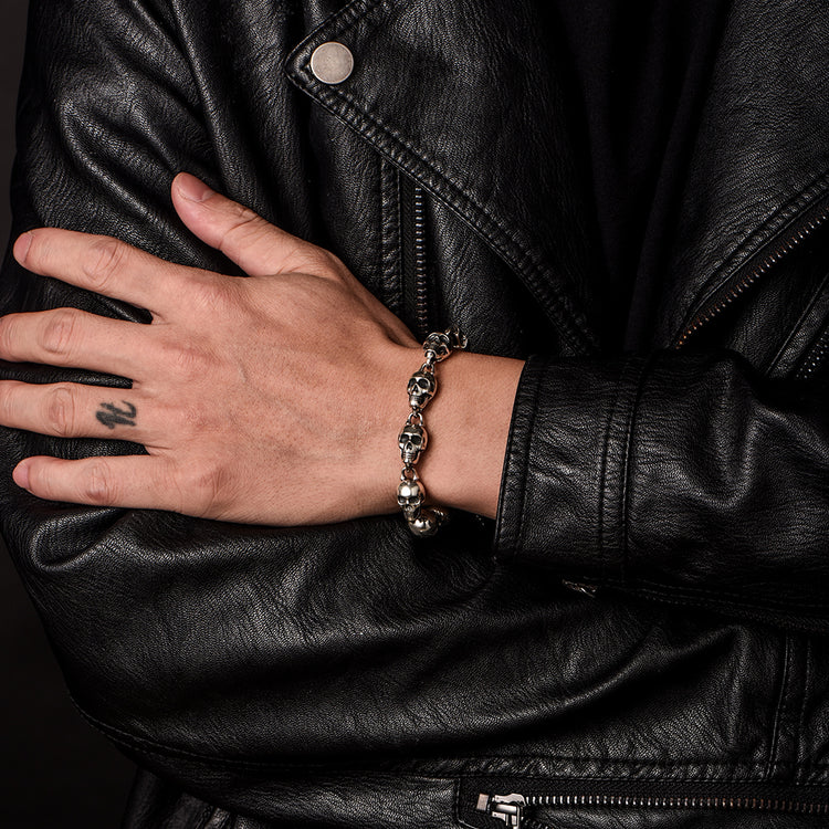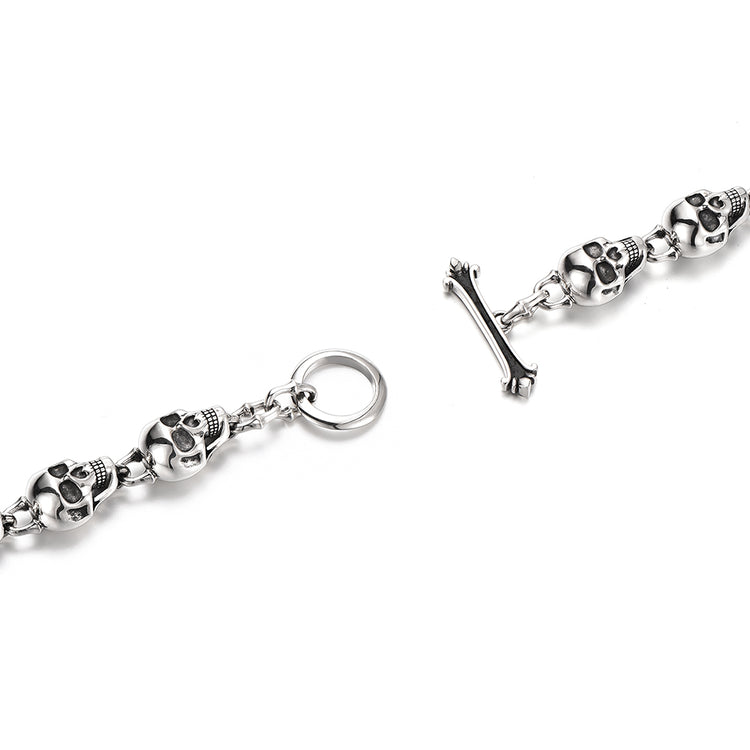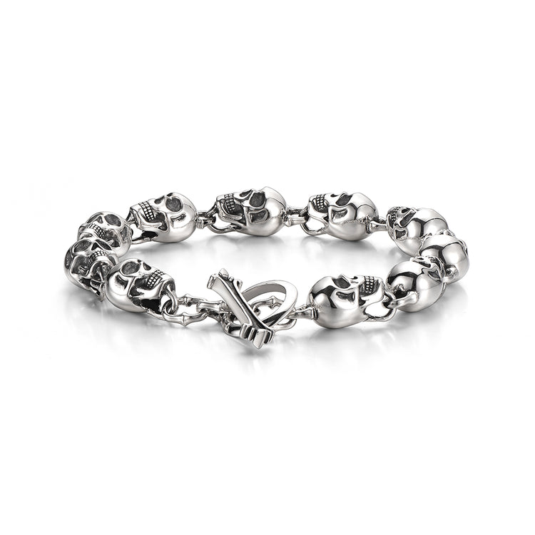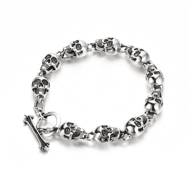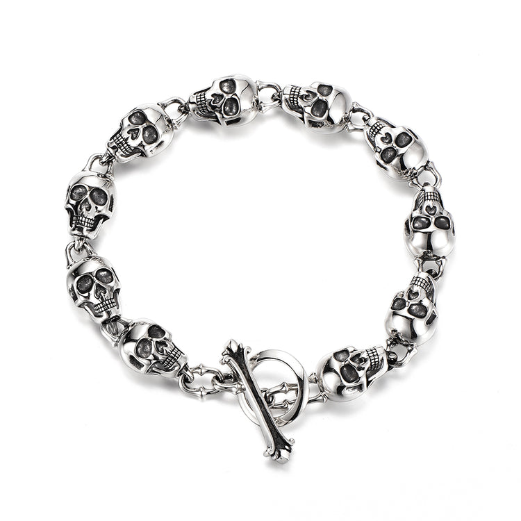Sterling Silver Ten Skulls Bracelet
