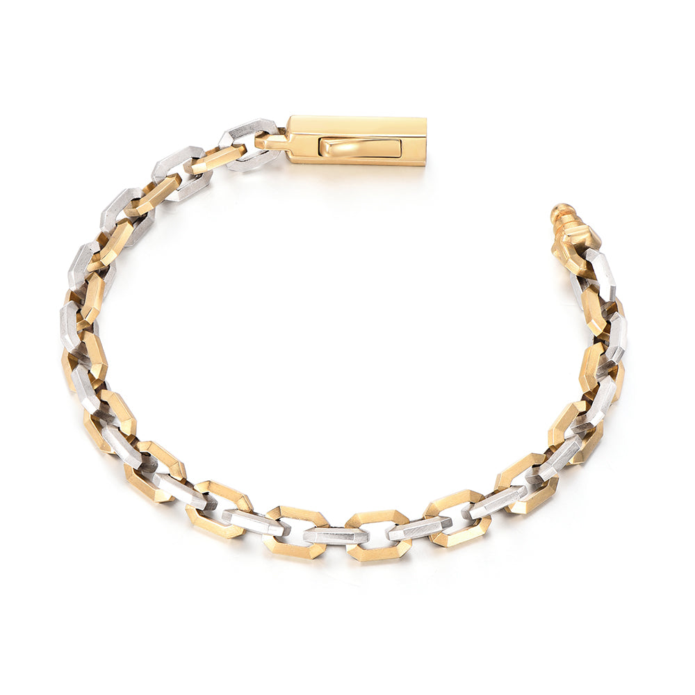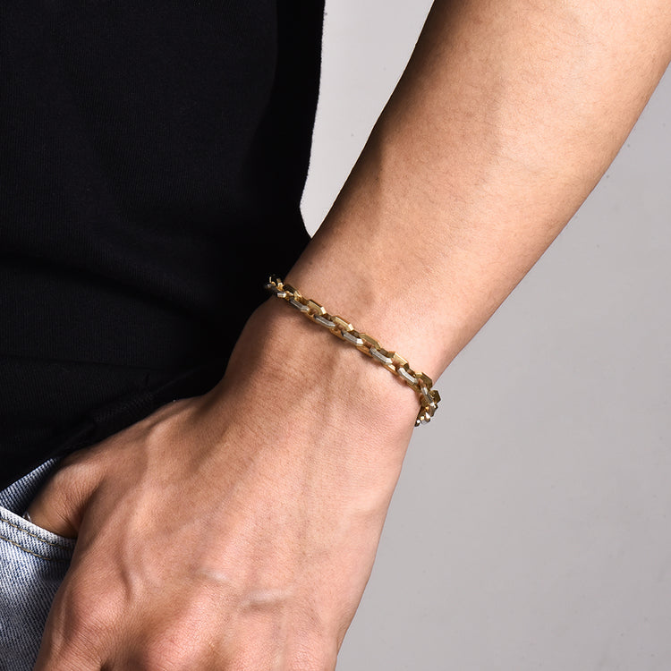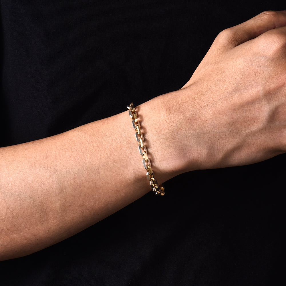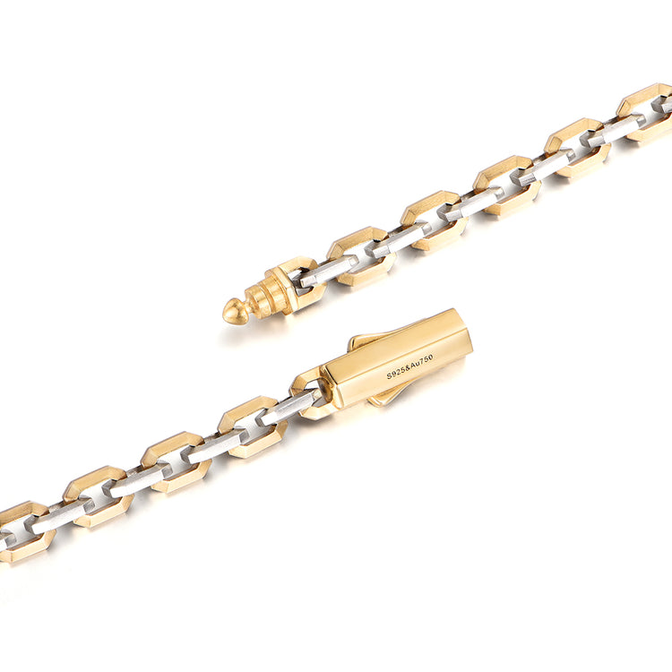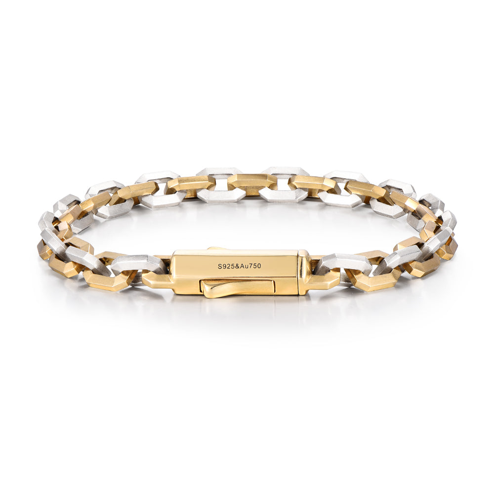 [Made To Order] Solid Faceted Link Chain Bracelet-18K Gold & S925