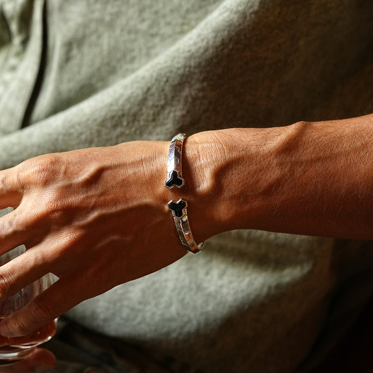 The Armor Collection draws from the timeless symbolism of protection, honor, and inner strength. Designed to echo the layered plating, rivets, and sharp contours of historical knight armor, each piece is sculpted with meticulous detail to mirror the fusion of man and machine. From angular chains to skulls with mechanical engravings, the collection fuses heritage craftsmanship with futuristic rebellion. The use of oxidized finishes and deep etching techniques enhances the raw, battle-hardened aesthetic—inviting modern men to wear their strength as both armor and identity.