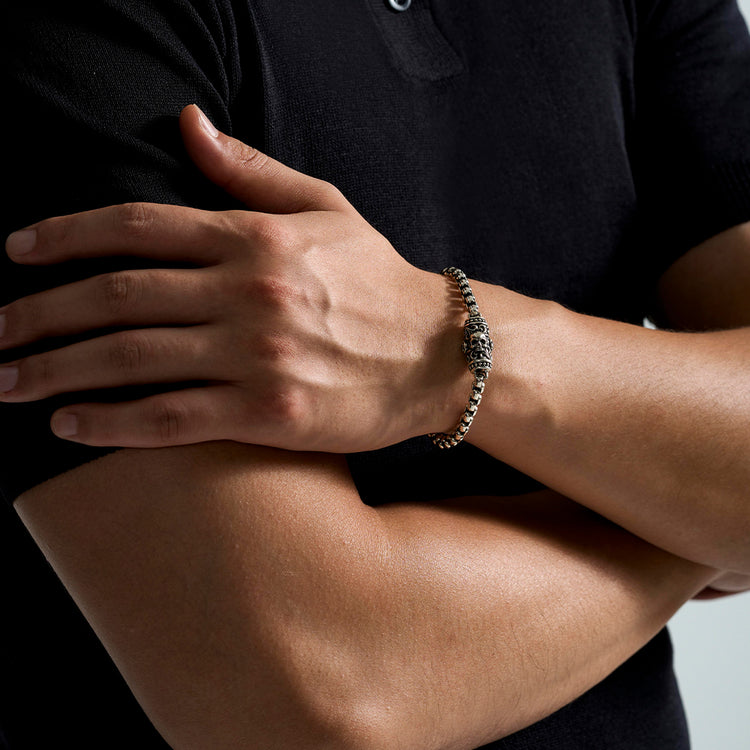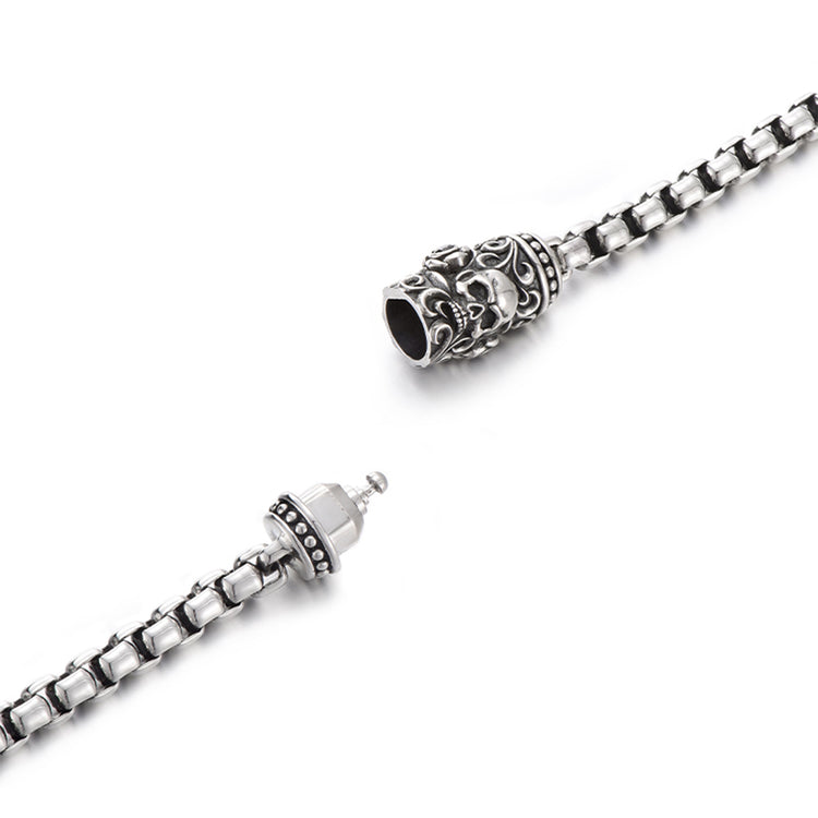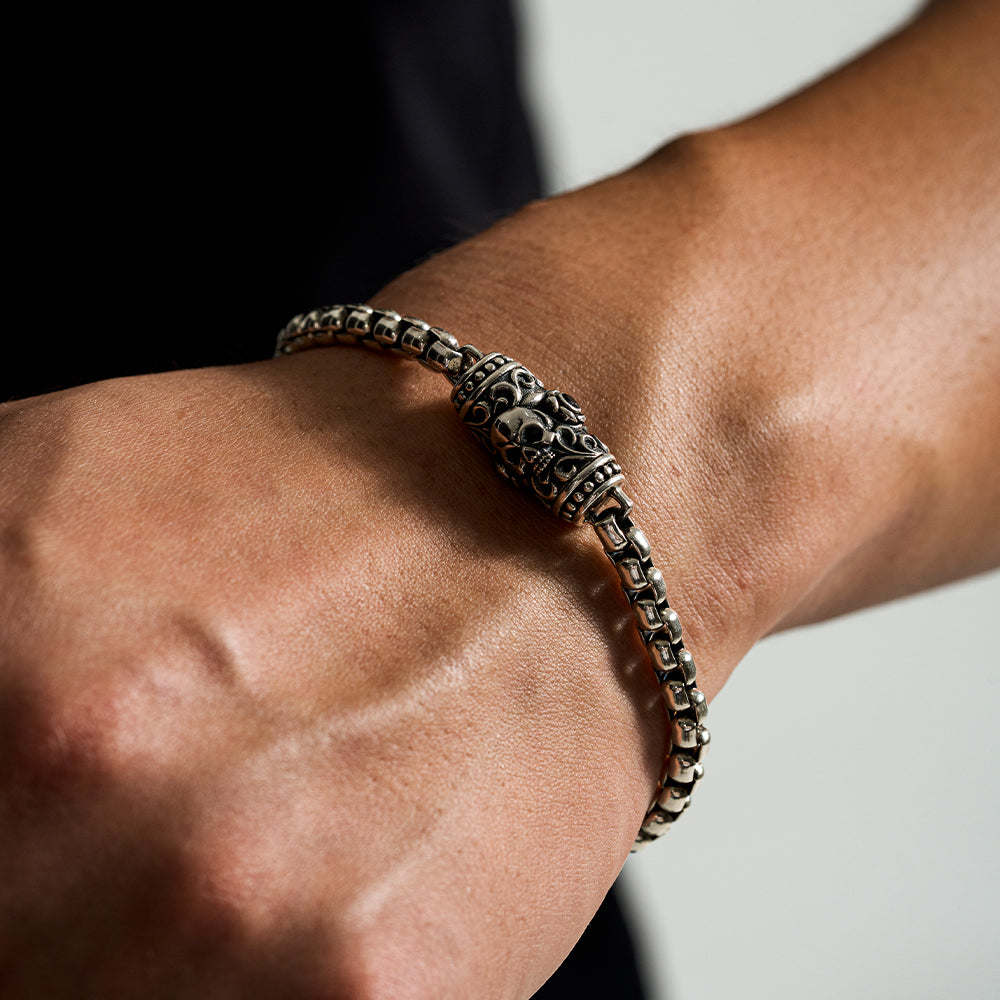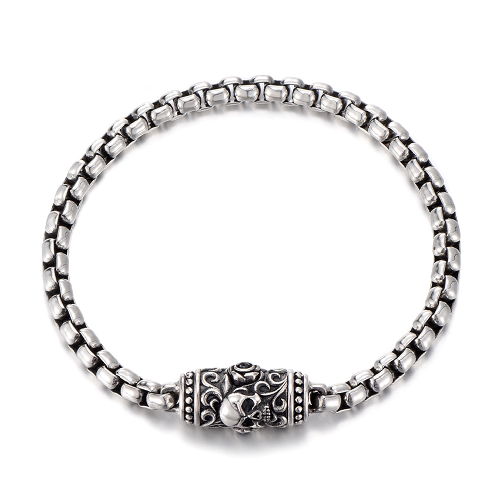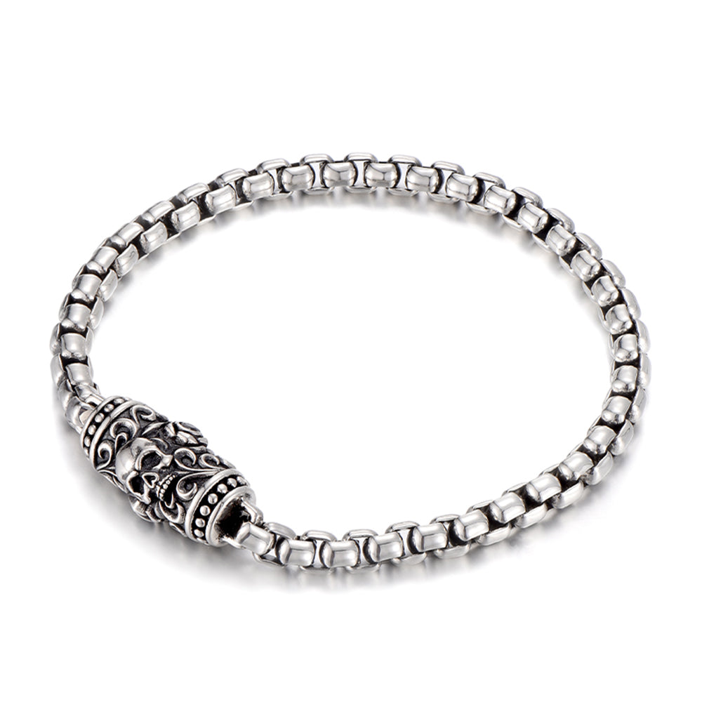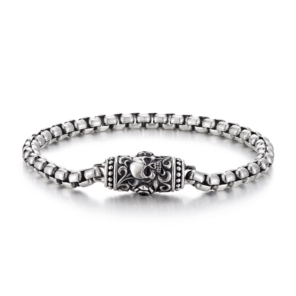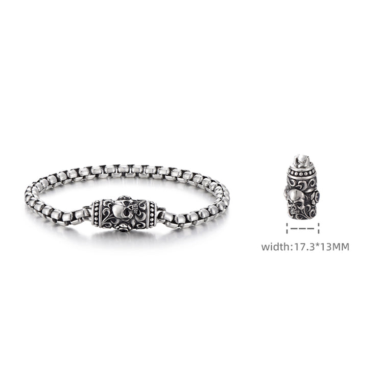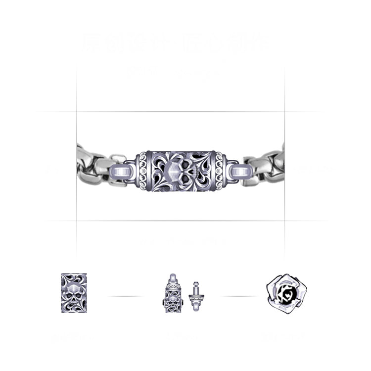 Vintage Skull & Rose Rolo Link Chain Bracelet
