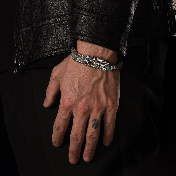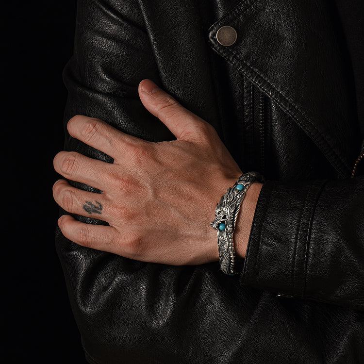 The bracelet uses the design of an auspicious dragon biting its tail to form a closed loop, which represents wealth, power, wisdom, and aura.