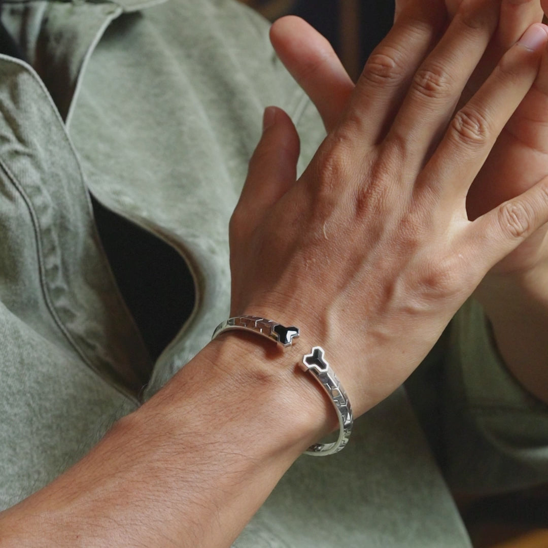 Vintage Black Onyx Spirit Eagle Wings Bangle Bracelet