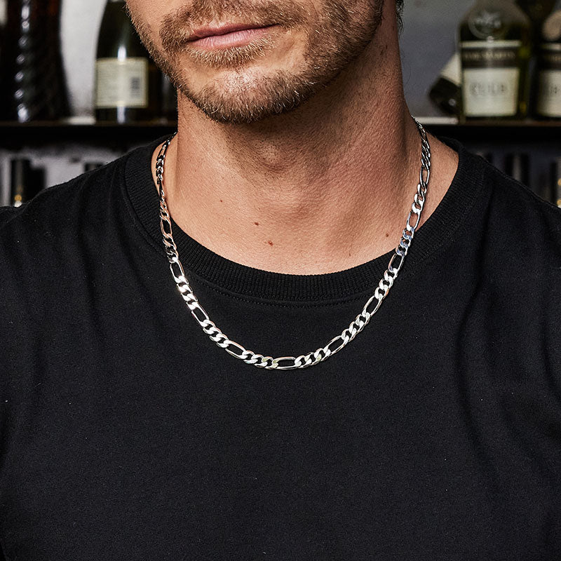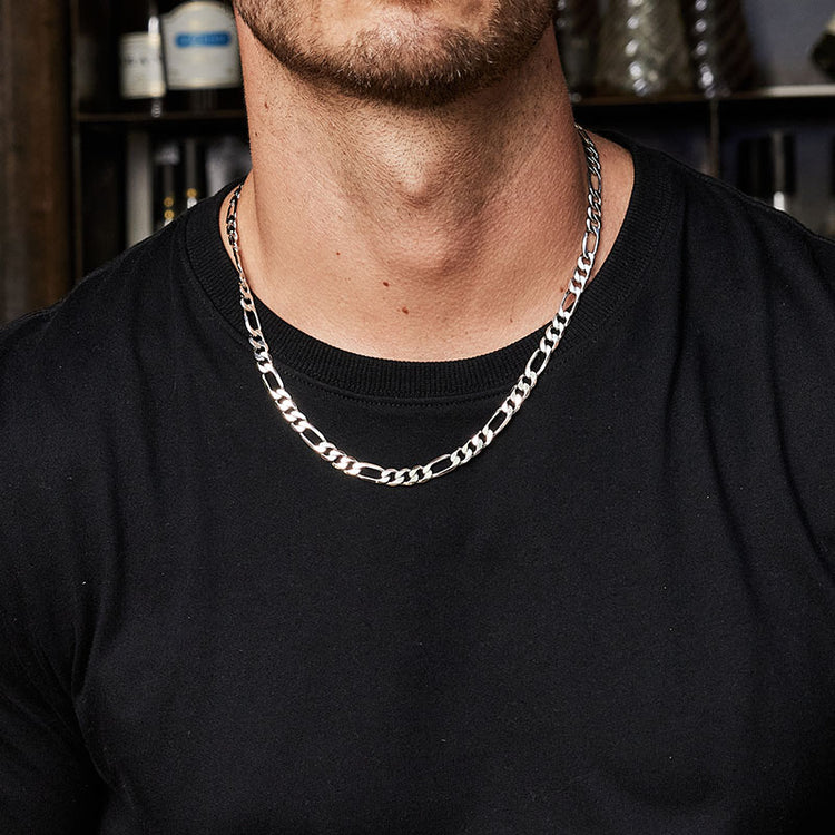 7.5mm Sterling Silver Figaro Chain