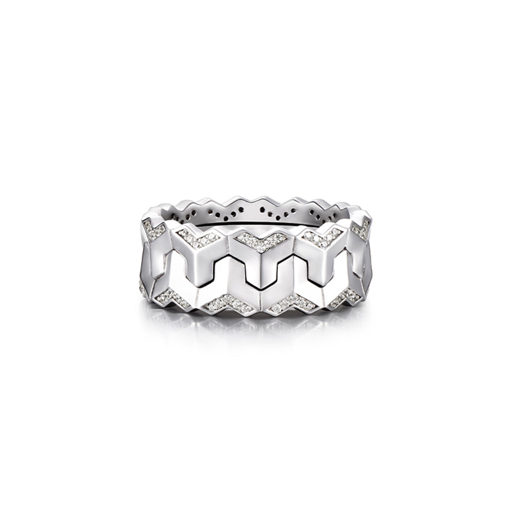 A modern twist on the Armor aesthetic. This ring features a polished single-row silhouette embellished with handset stones, adding controlled brilliance without compromising masculine edge. Perfect for elevating everyday looks.