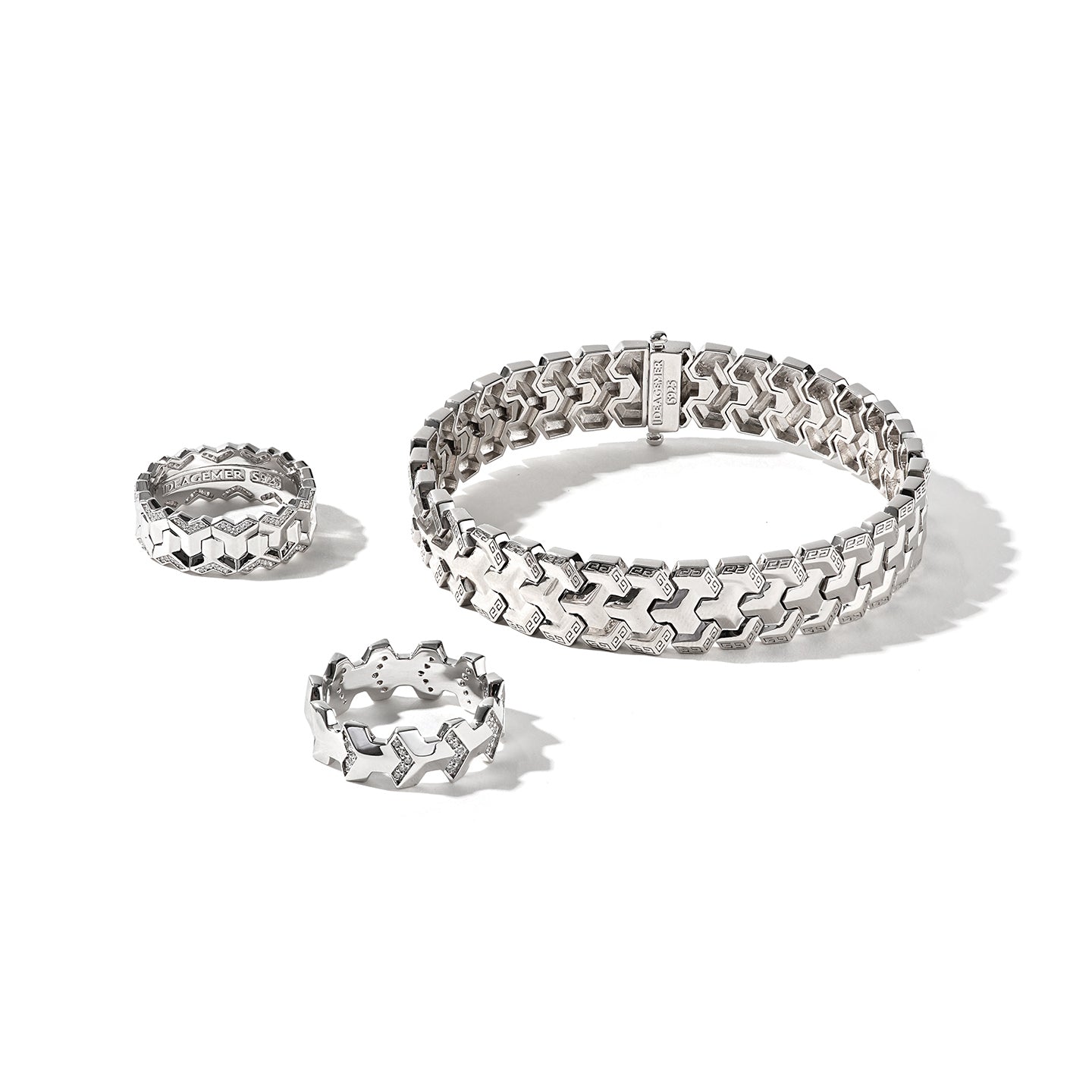 A bold reinterpretation of classic armor. This sterling silver bracelet features distressed textures, oxidized detailing, and a triple-row structure that delivers weight, dimension, and unmistakable character.