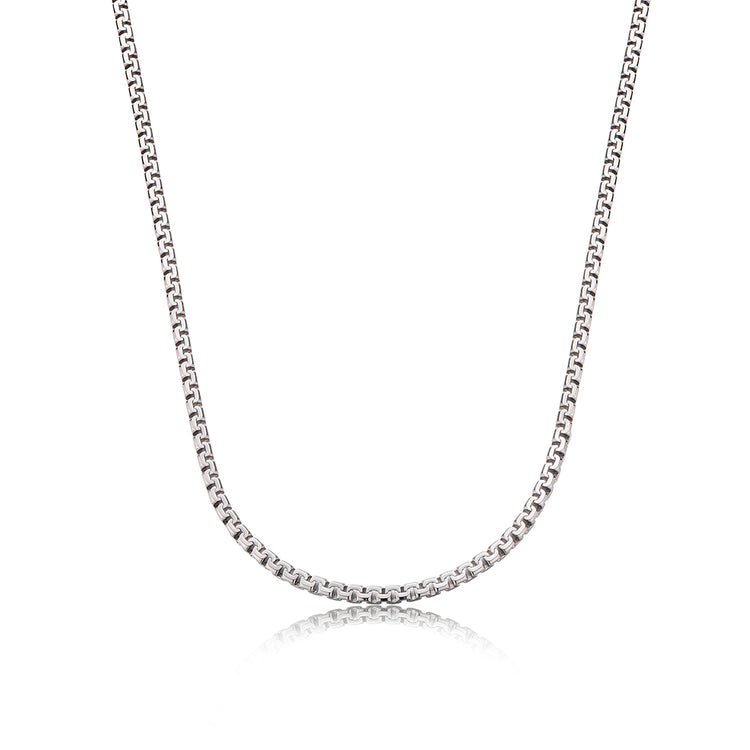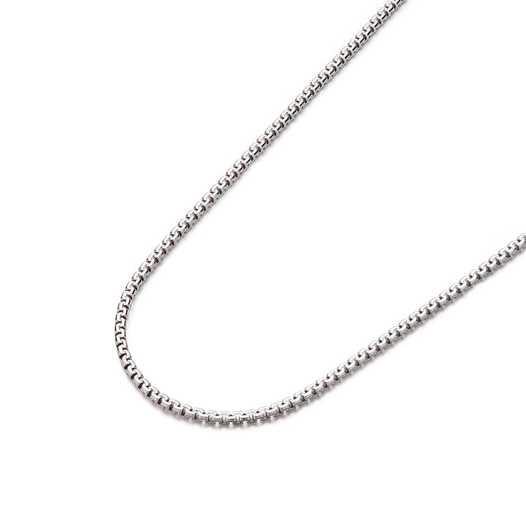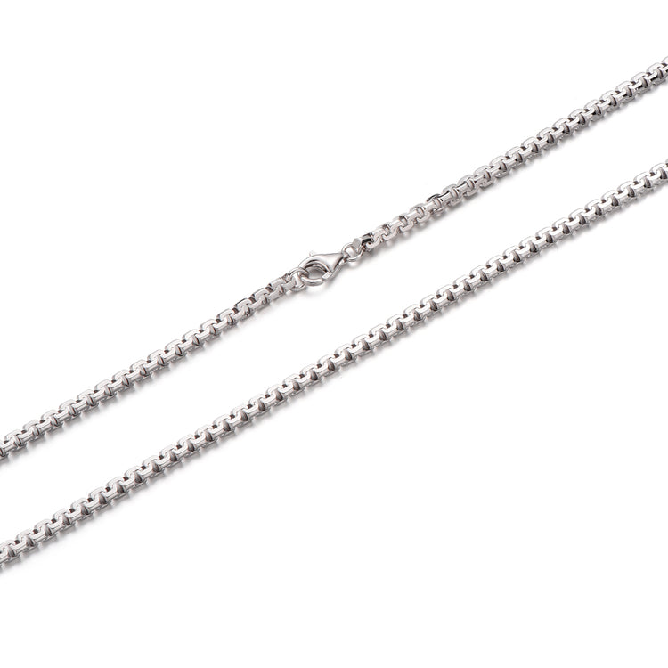 Crafted in solid sterling silver, the octagon box construction enhances both durability and visual clarity, offering a refined alternative to traditional round or square chains. Its balanced weight and smooth articulation make it ideal for everyday wear, whether worn solo or paired with a pendant.