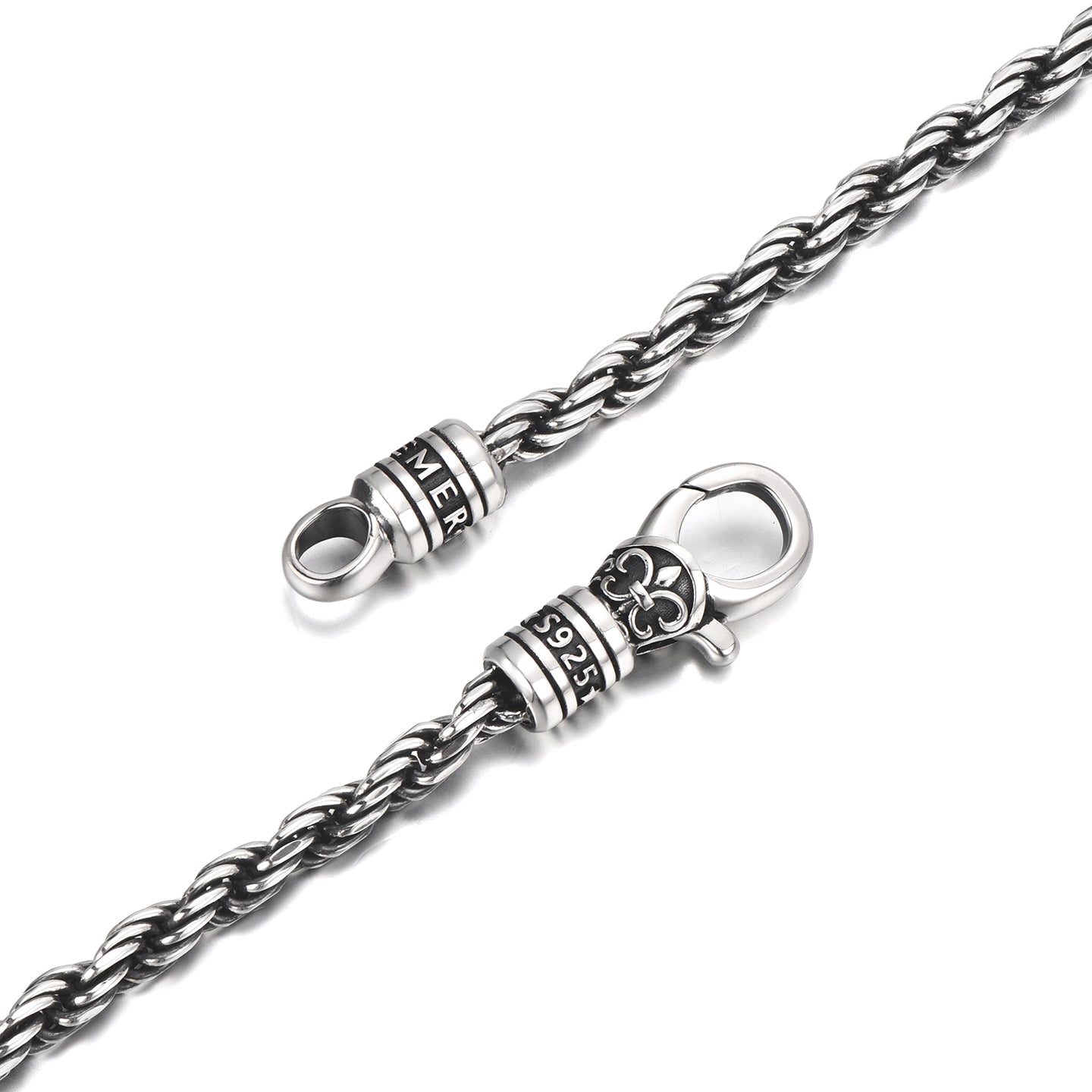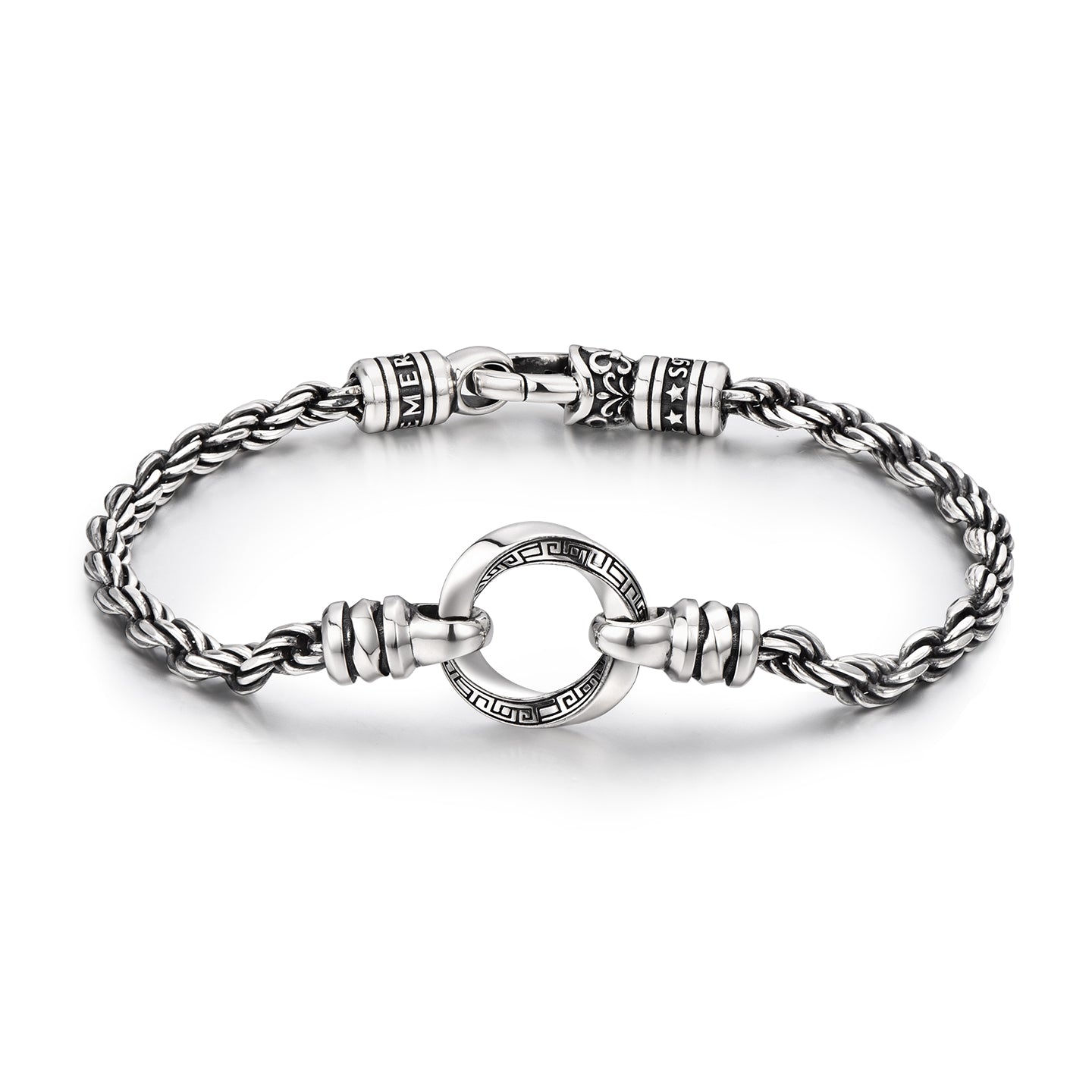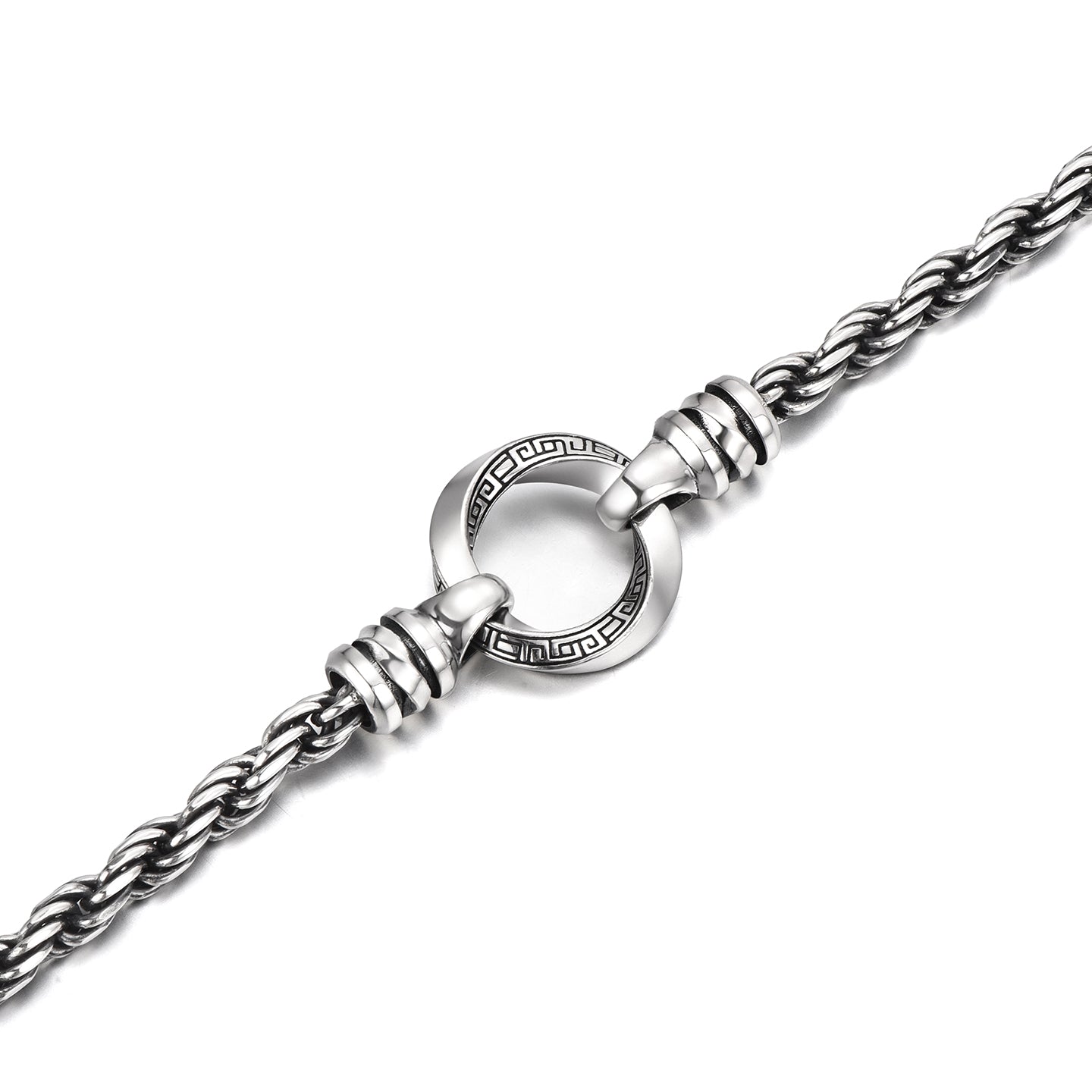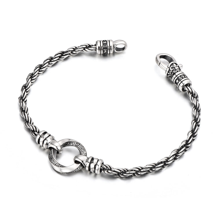 The Mobius Hoop Rope Chain Bracelet combines two enduring forms of strength: the twisted rope chain and the Möbius loop — a symbol of infinity, continuity, and balance.