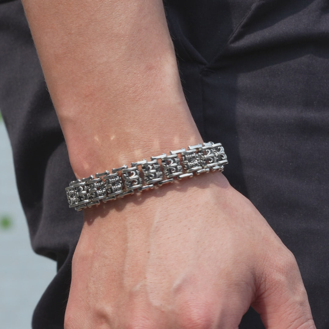 Vintage Fleur-De-Lis Skull Roller Chain Bracelet
