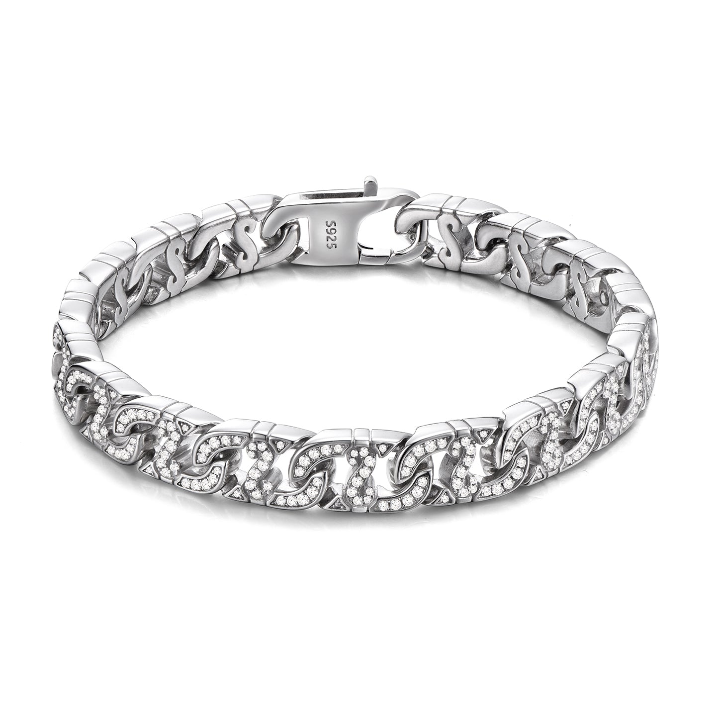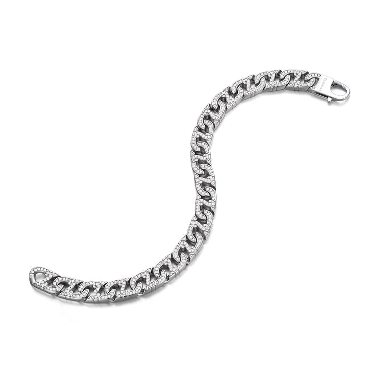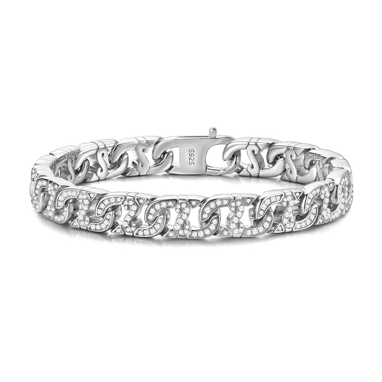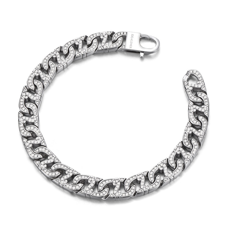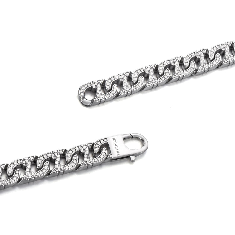 To create its distinctive brilliance, the bracelet is plated with premium white gold and hand-embellished with precision-set stones to deliver a fully iced-out aesthetic. The polished silver structure underneath provides weight, durability, and an unmistakably premium feel.