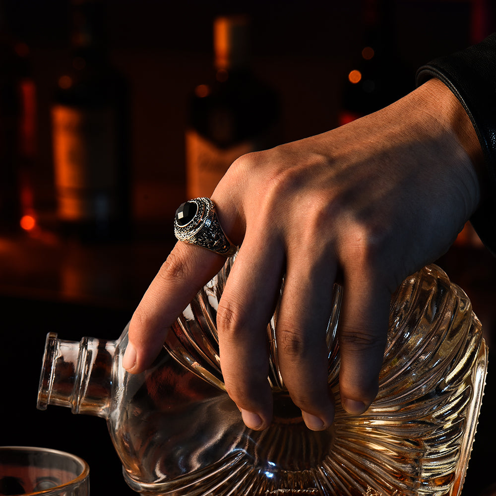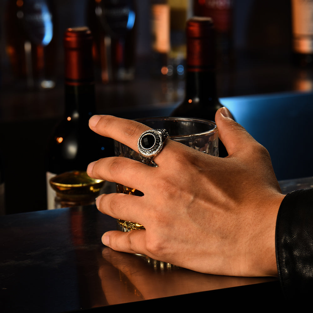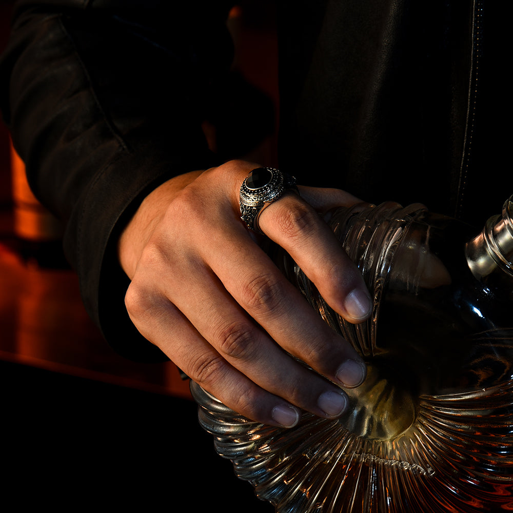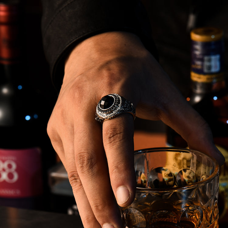 Designed for men who value presence and symbolism, this black onyx signet ring is not ornamental — it is declarative.