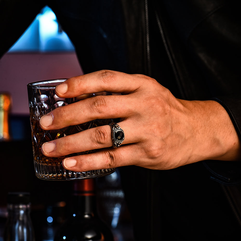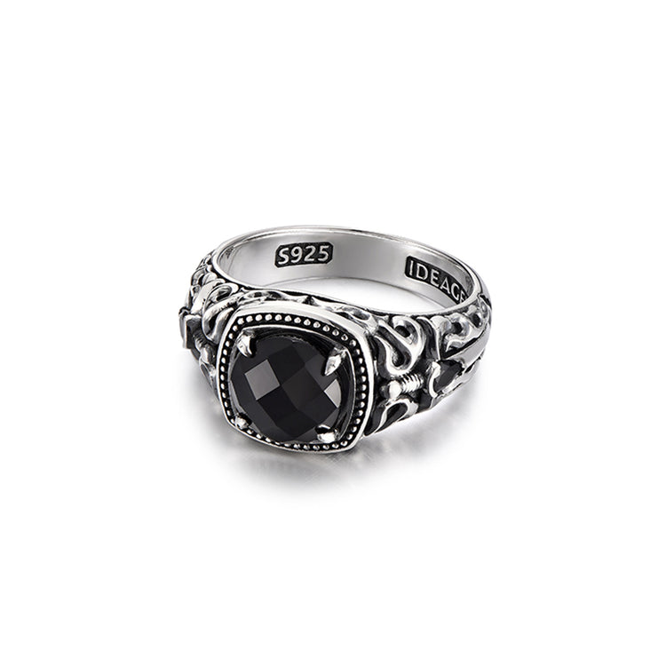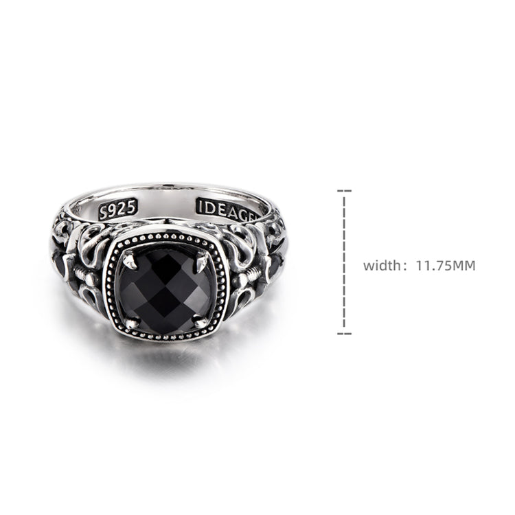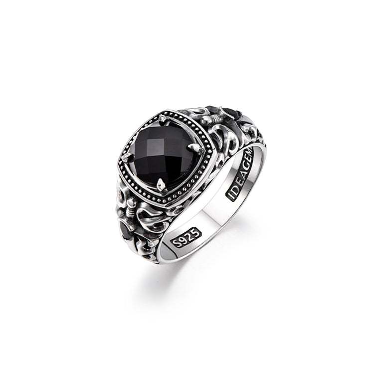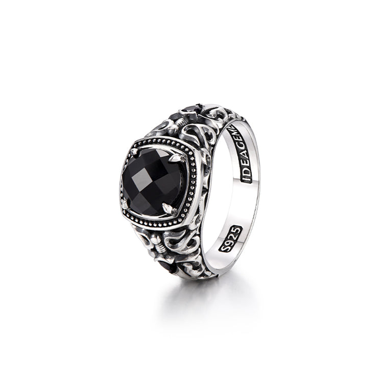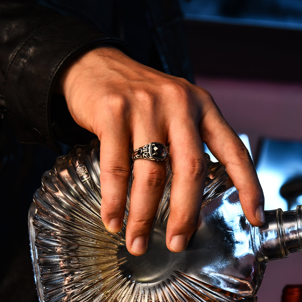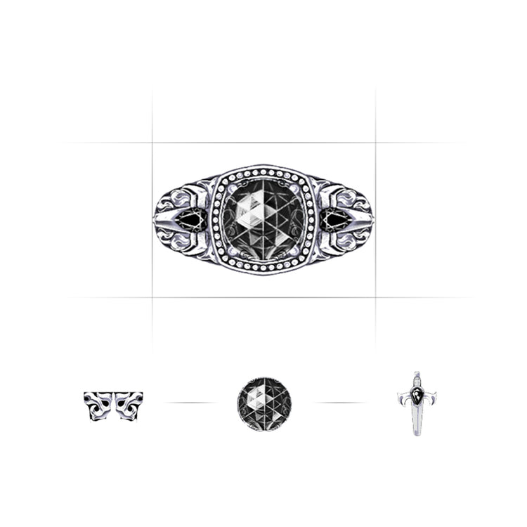 The Vintage Flame Sword Black Onyx Signet Ring represents strength shaped by control rather than excess.
