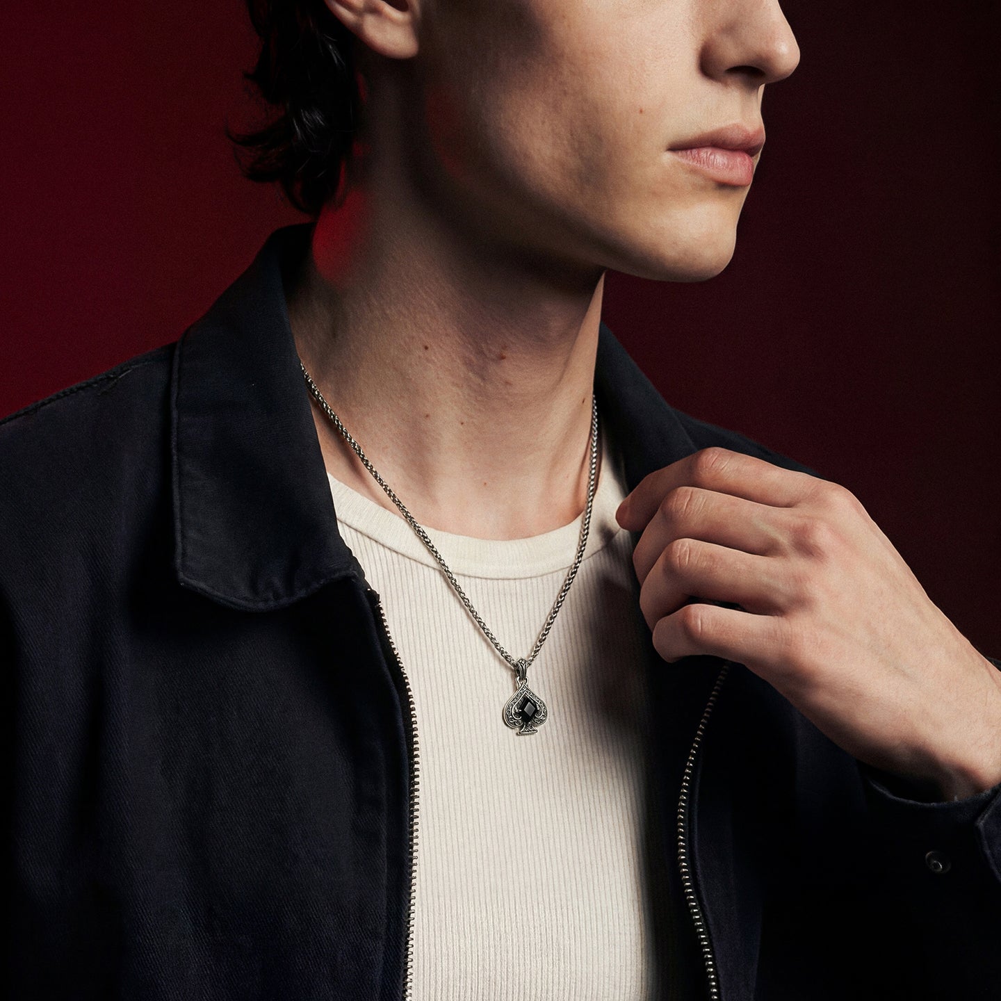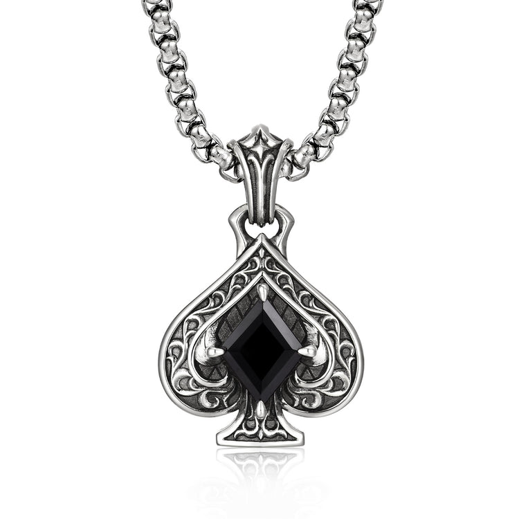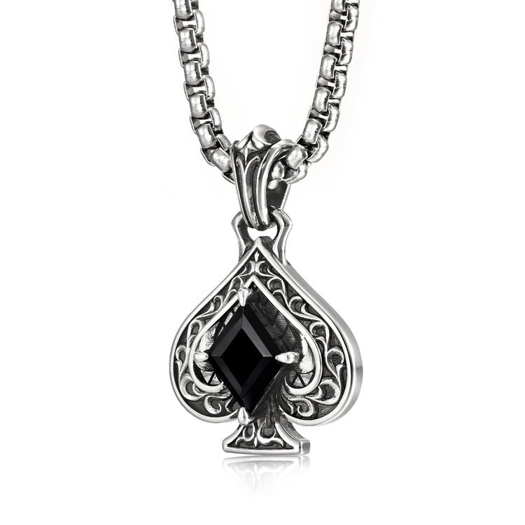 The Shadow Ace Filigree Spade Pendant is a wearable tribute to "Calculated Destiny"—the ability to master one’s fate through precision and poise. Centered by a sharp, diamond-cut black gem, the spade serves as a modern talisman of strategic mastery and hidden strength. It is the definitive piece for the individual who understands that life is a game of skill, choosing to lead from the shadows with quiet, unyielding authority.