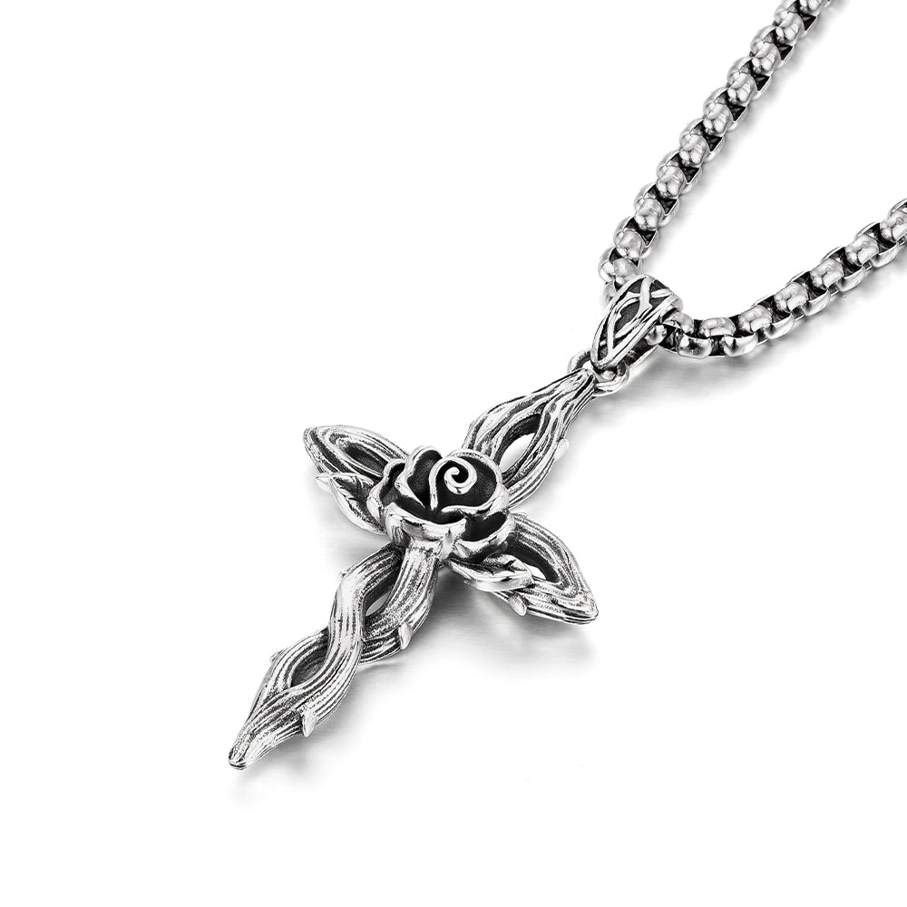 Vintage Rose Cross Pendant