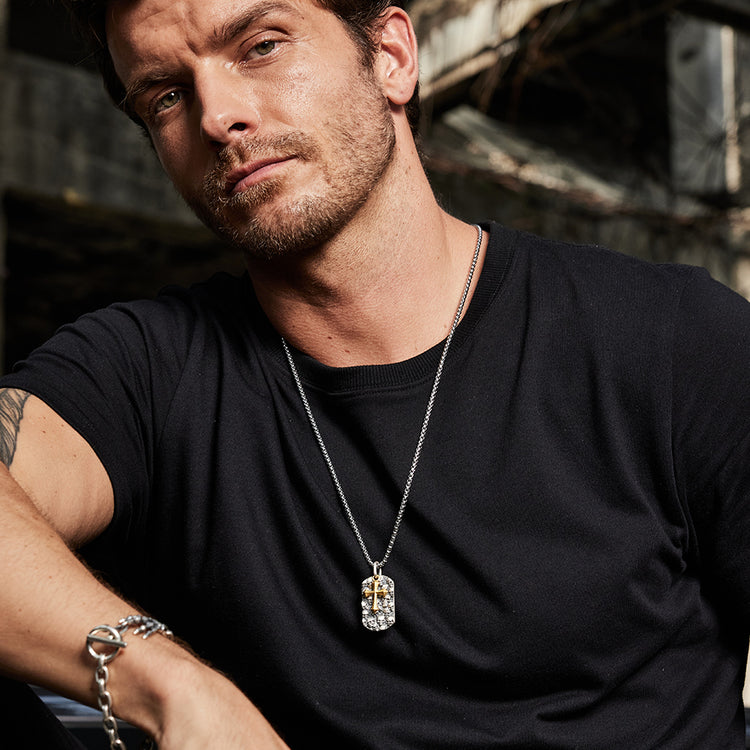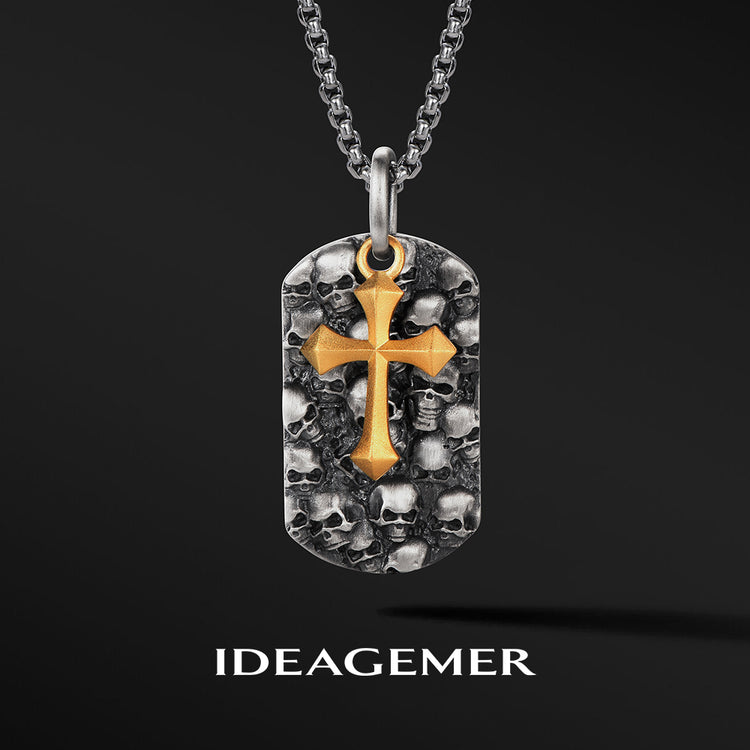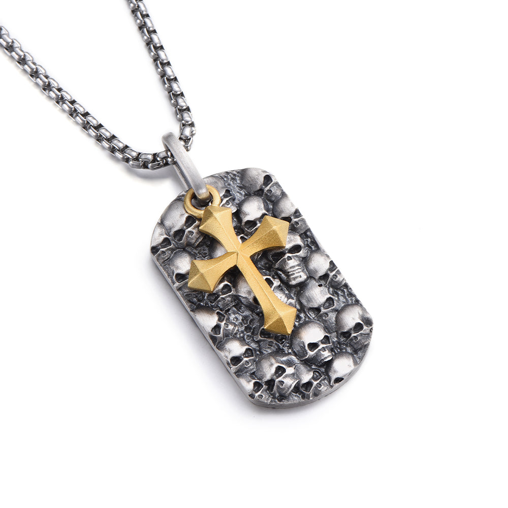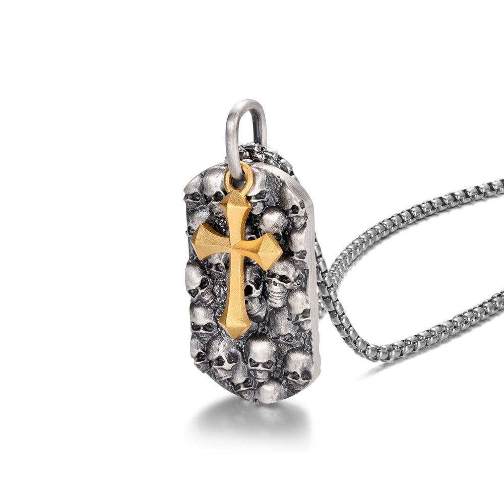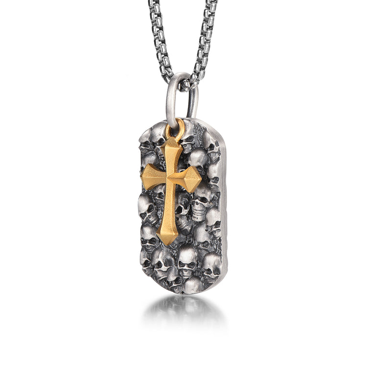 Cross & Skulls Dog Tag Pendant