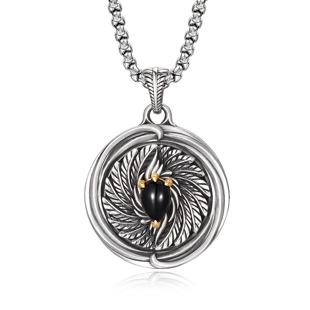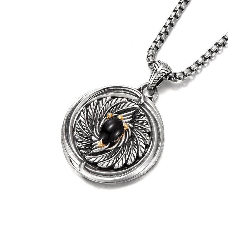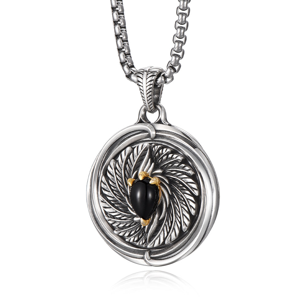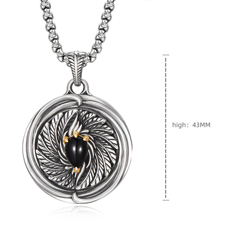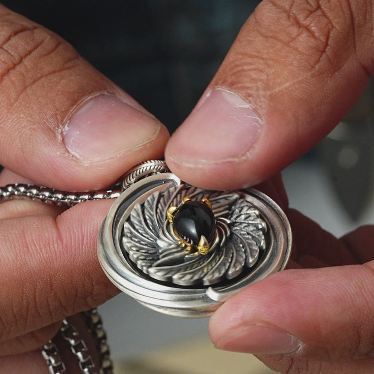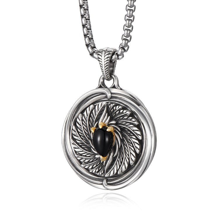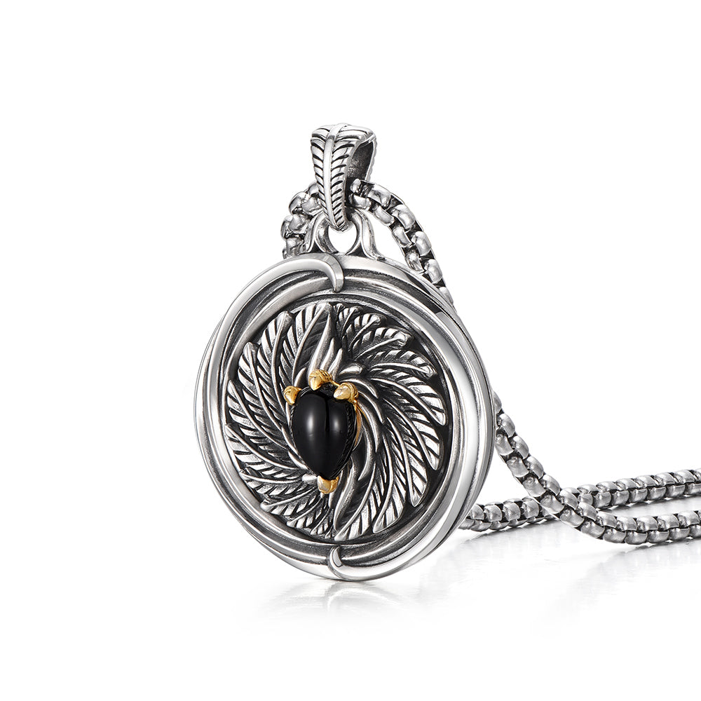 Vintage Black Onyx Spirit Eagle Spinning Wings Pendant