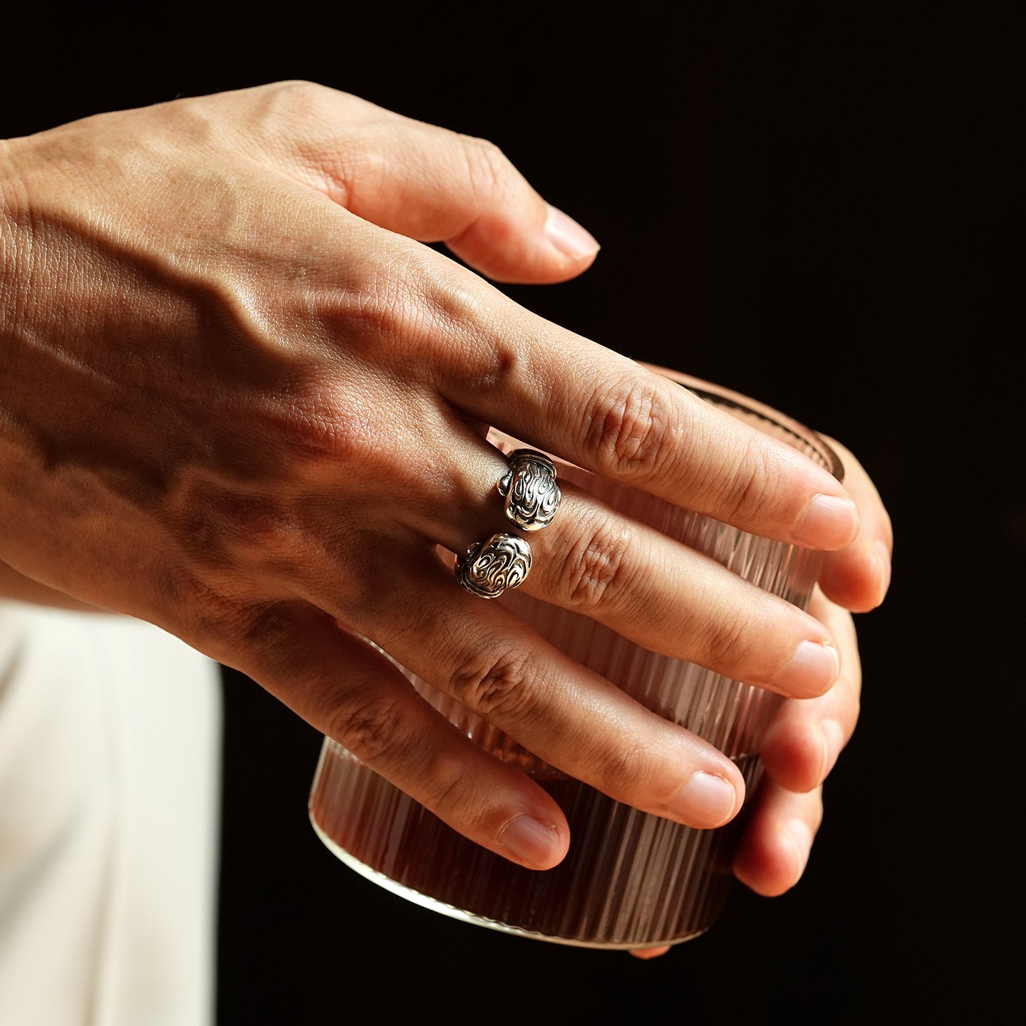 Every glove is rendered in three-dimensional detail, capturing the weight, curvature, and tension of real boxing gear. Finished with a vintage oxidized effect, the ring carries a raw, worn-in character that reflects experience earned, not imitated.