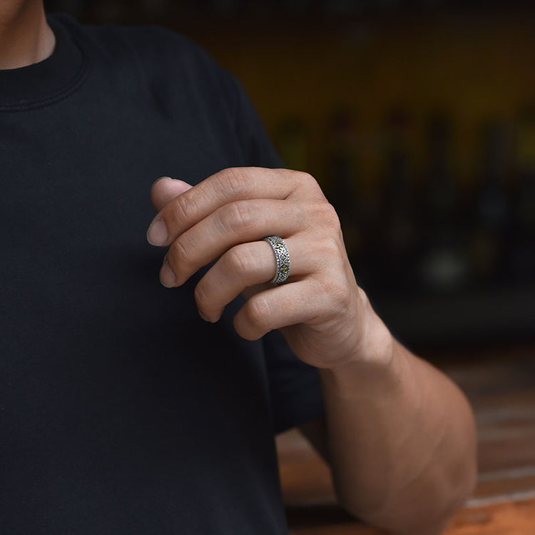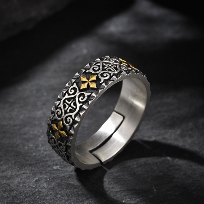 Taking the cross pattern element as the design inspiration. It means courage, strength, and wisdom. At the same time, it represents the yearning and belief in the attitude towards life. The combination of copper and silver materials also makes it more textured.