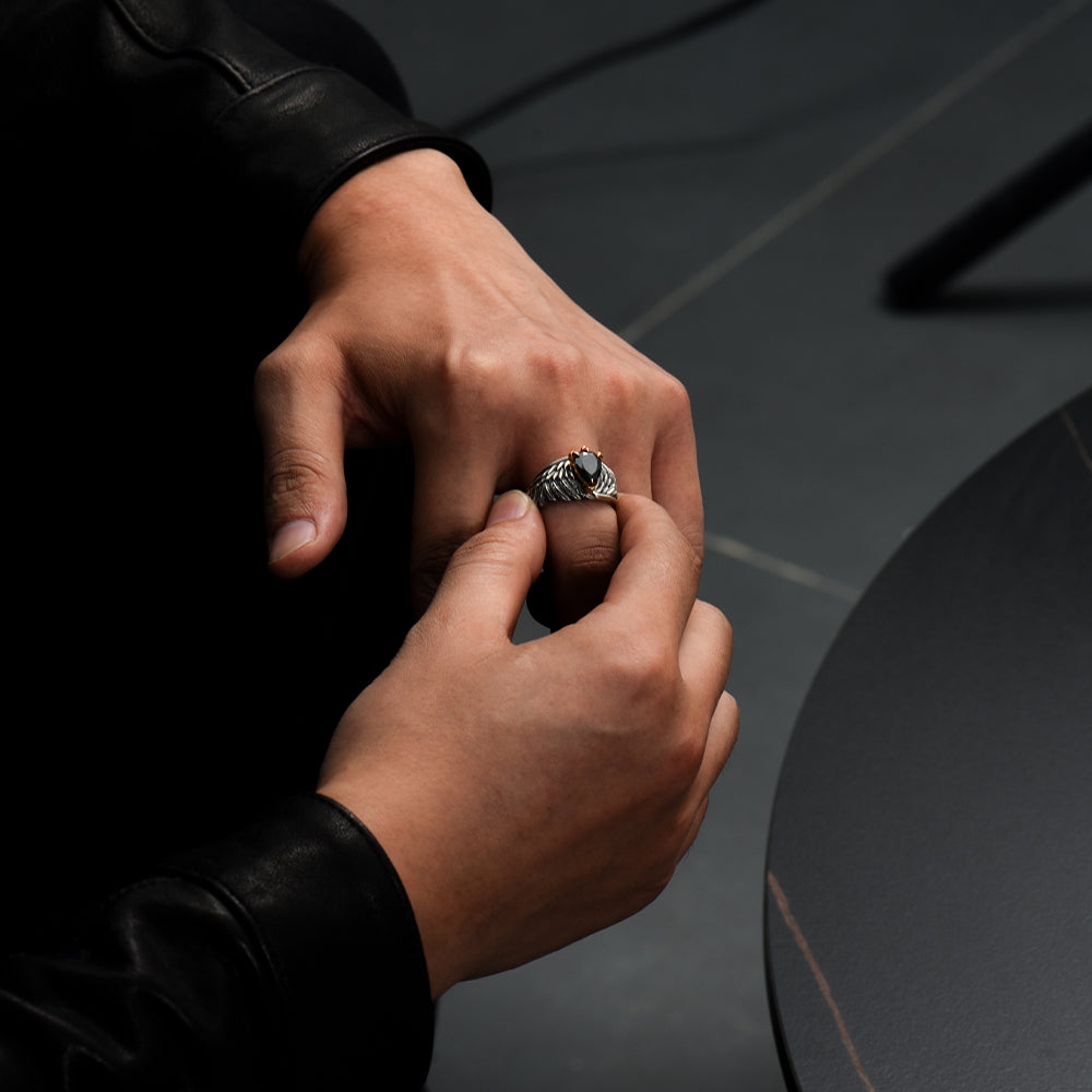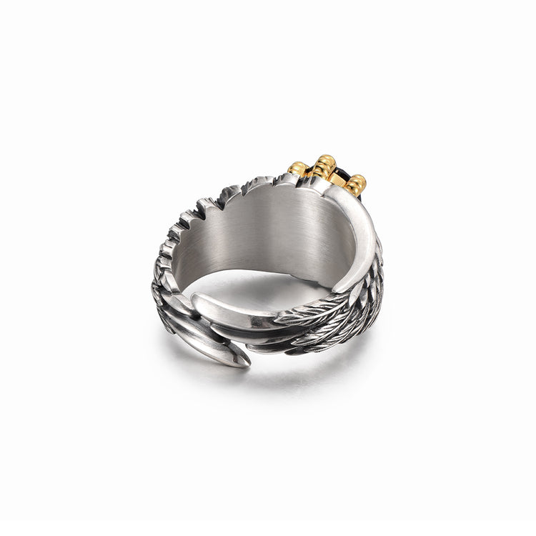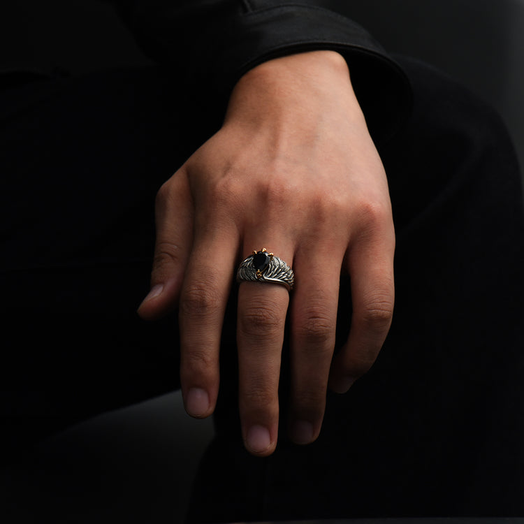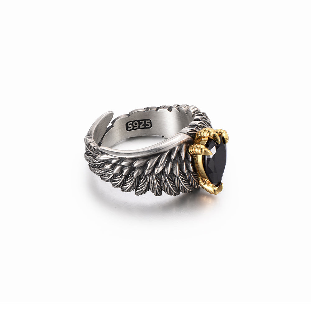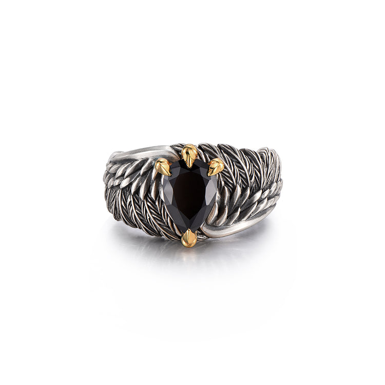 Vintage Black Onyx Spirit Eagle Spiral Wings Ring