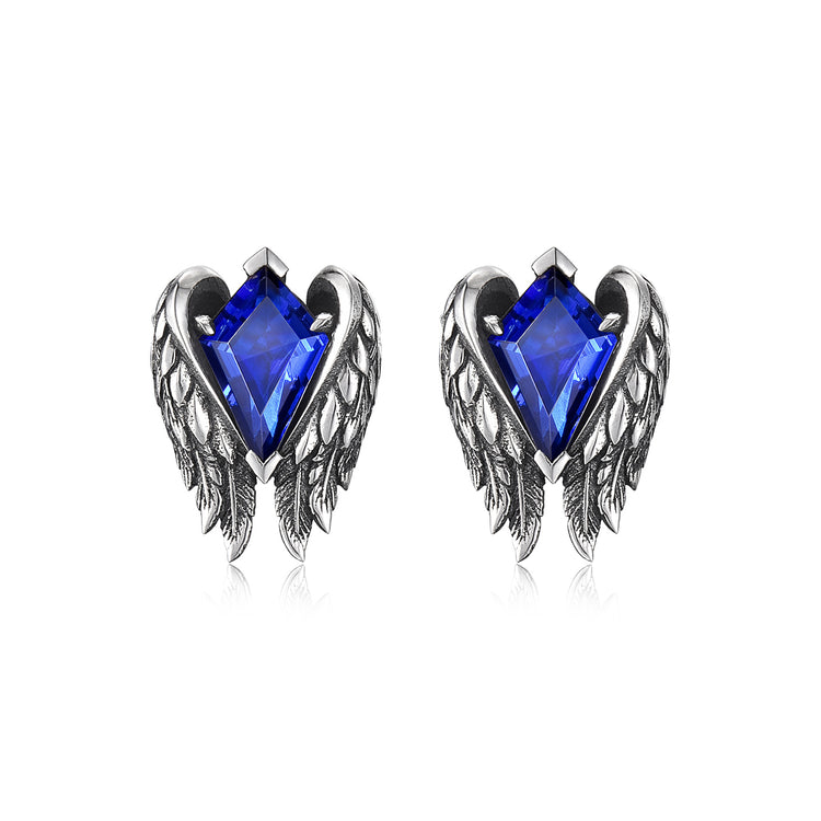 The Vintage Sapphire Wings of Freedom Stud Earrings combine symbolic design with sculpted metal detail. Inspired by the idea of freedom and elevation, the wing structure wraps around a deep blue sapphire-toned stone, creating strong visual contrast.