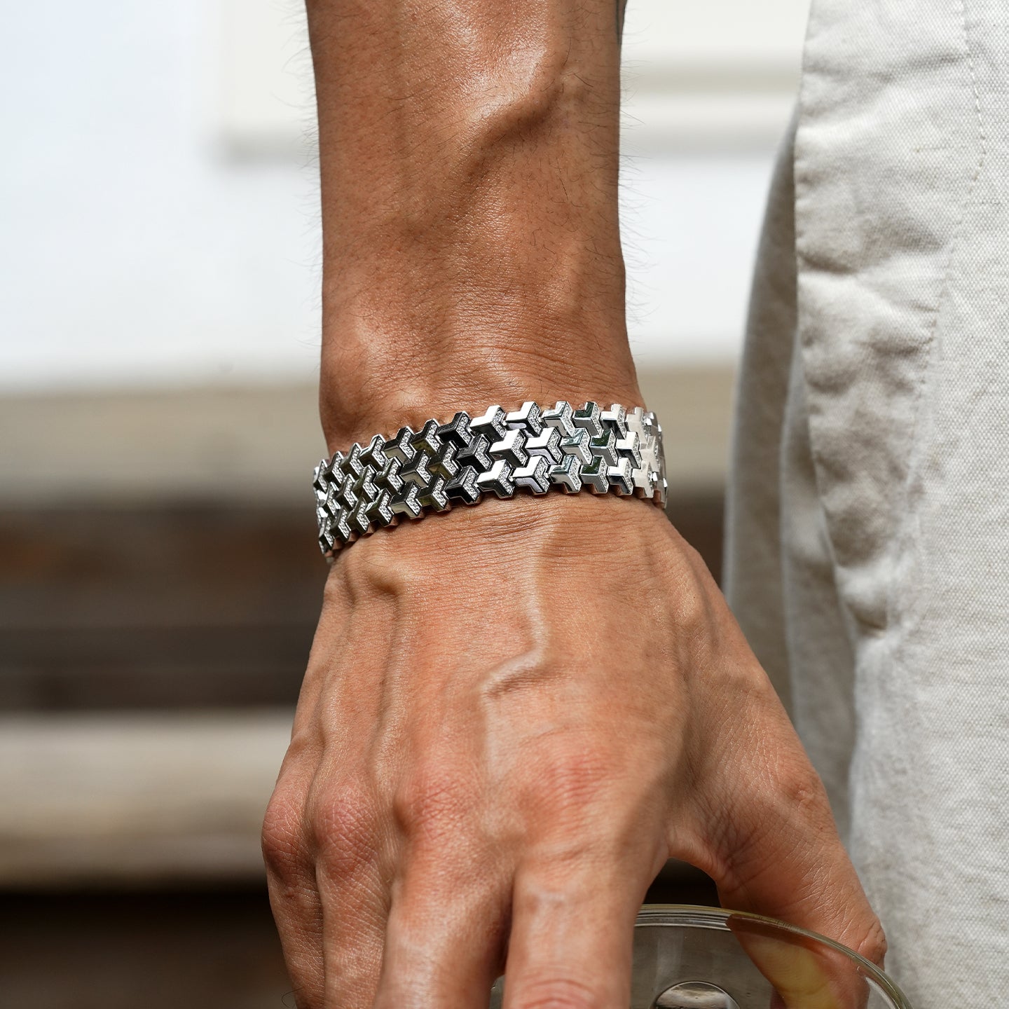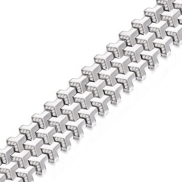 Handcrafted from solid S925 sterling silver, the new version introduces a reinforced bottom plate, adding both weight and tactile depth to the design. Every link is meticulously polished and assembled to achieve a balance between strength and fluidity — the hallmark of modern craftsmanship.
