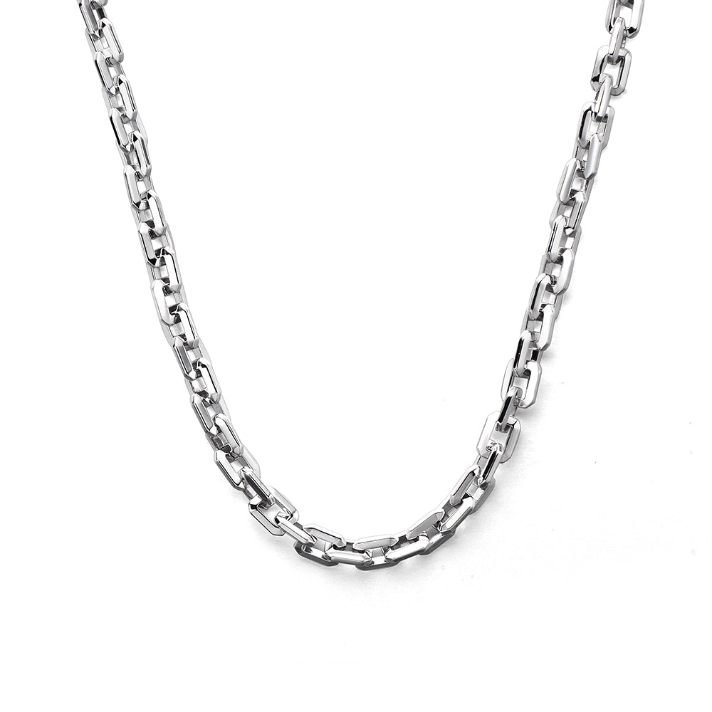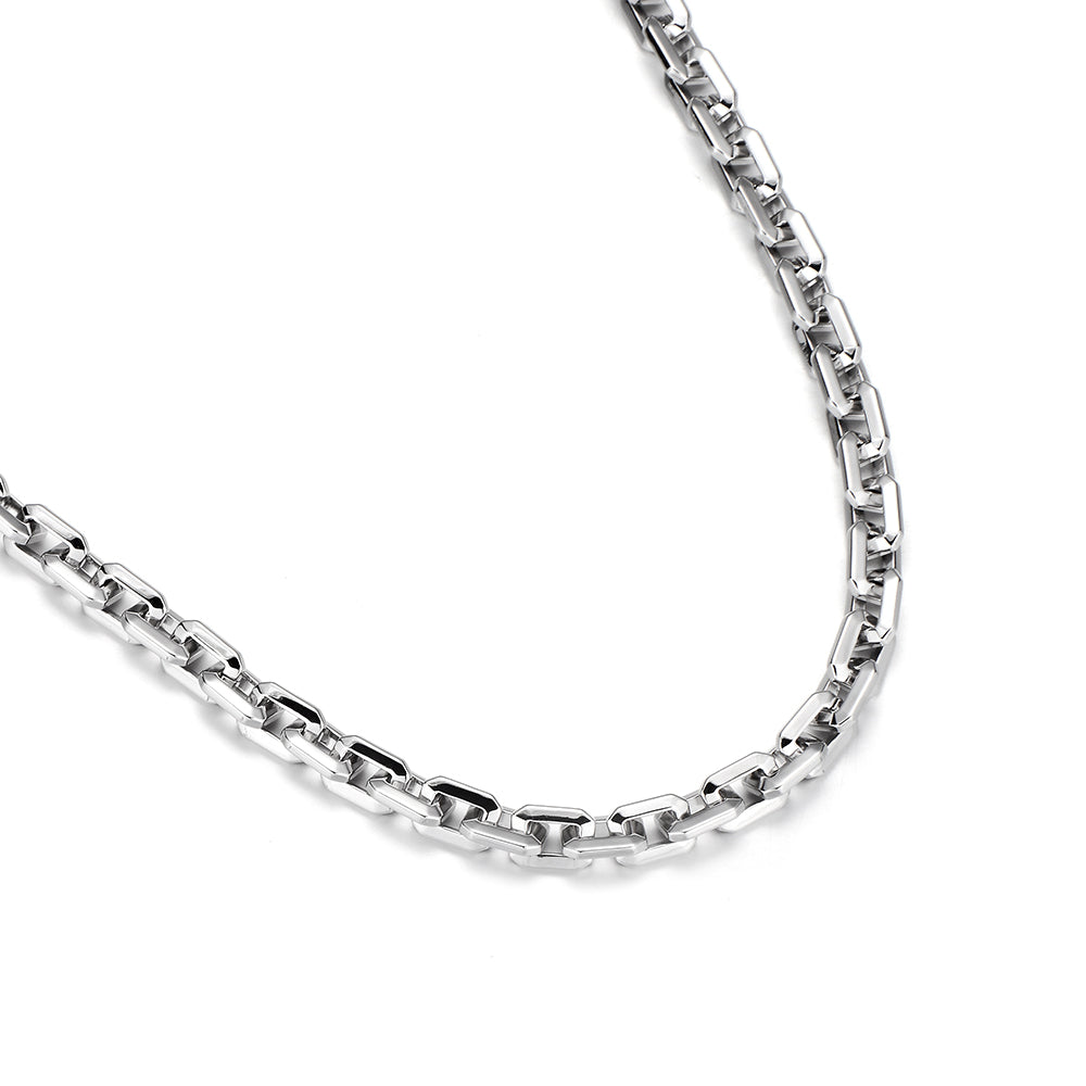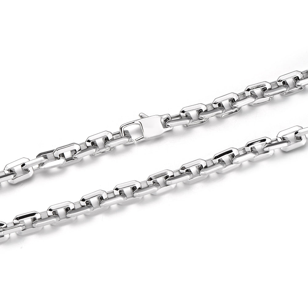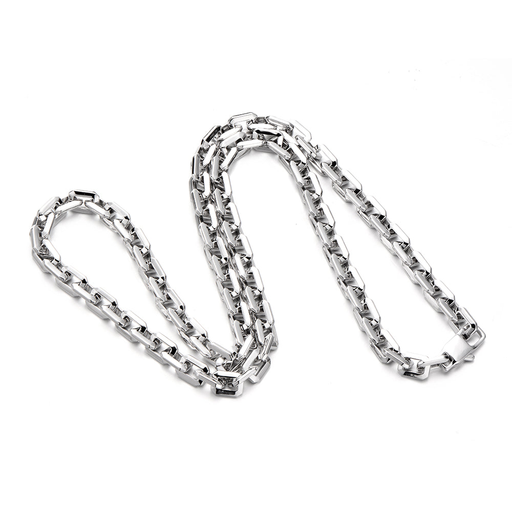 Crafted in solid sterling silver, the 6mm elongated link chain has a reassuring weight and smooth finish for comfortable daily wear. Its vintage-inspired design turns a classic chain into a statement accessory for men seeking bold, luxurious, and timeless mens jewelry.