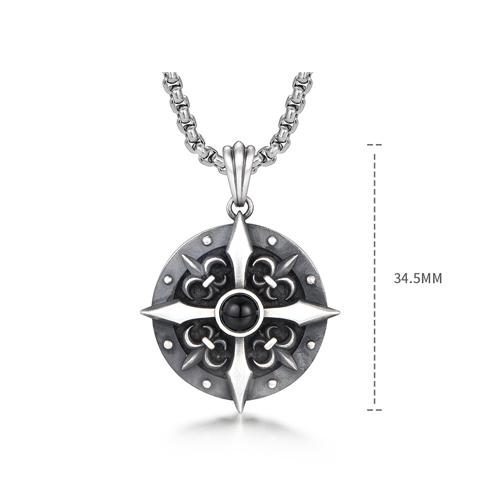 Vintage Cross Star Round Pendant