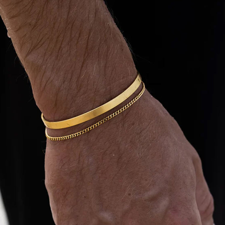 Inspired by iconic cuff silhouettes, the design balances refined craftsmanship with durability, offering not just a bracelet, but a symbol of enduring style. Whether worn solo for a sharp minimalist look or layered with other accessories, the Solid Icon Cuff is built to complement the lifestyle of confident, style-conscious men.